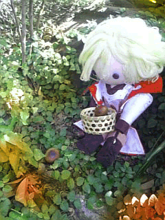 我が家の秋の庭にて撮影。くりひろいレオンちゃん。